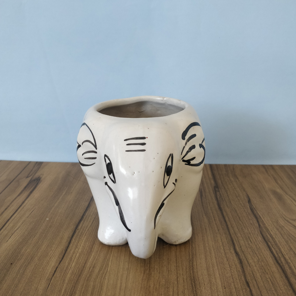 The durable and sturdy construction of the pot ensures longevity, while the smooth surface makes it easy to clean and maintain. Whether you're a plant enthusiast or looking for a stylish gift for a friend, our Elephant Shape Marble Finish Ceramic Pot in White is a delightful choice that seamlessly blends aesthetics with functionality.
