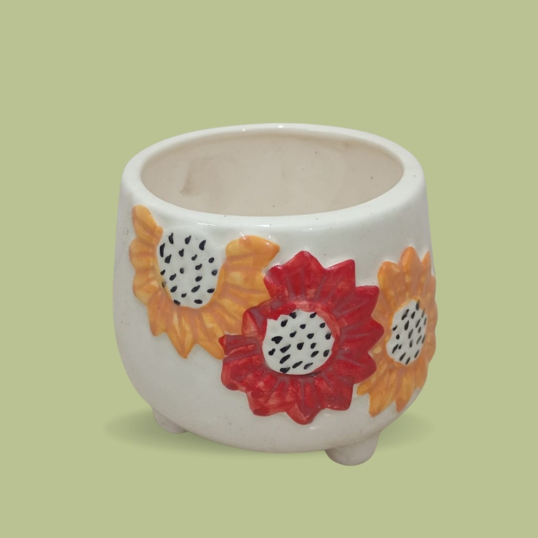 WHITE CERAMIC PLANTER, SQUARE PLANT POT WITH DRAINAGE HOLE