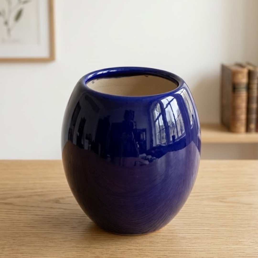 A PERFECT INDOOR PLANT IN GLOSSY BLUE OVAL POT BY ROLLING NATURE FOR GREEN DECOR & GREEN GIFTING.